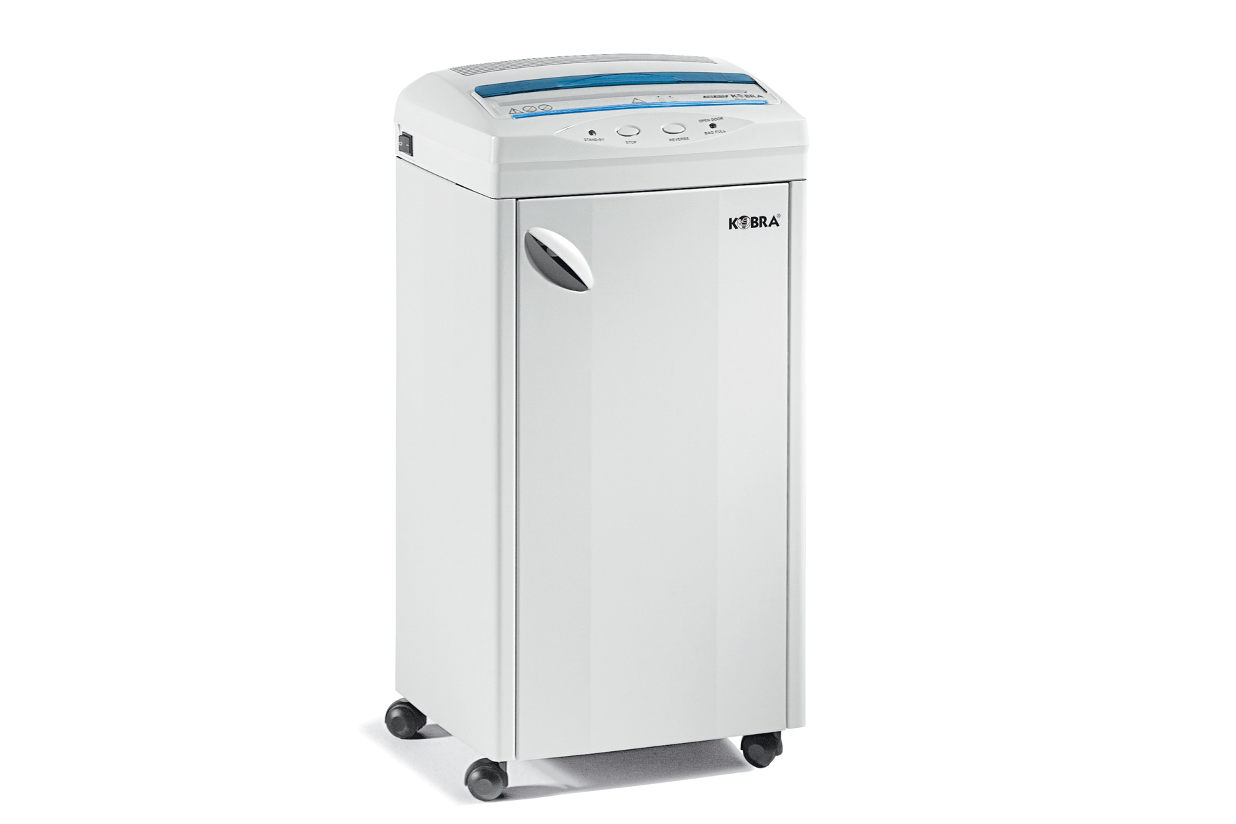 Kobra 300 SS5 classic line shredder comes with steel cabinet, sturdy steel gears and two metal chain drive systems which offer reliability and resistance to wear, carbon hardened steel cutting knives unaffected by staples and clips. Motor thermal protection: 24 hour continuous duty double motor drive technology without overheating and duty cycle. It can shred up to 46 sheets at a time in straight cut and also CD/DVD/Blu-ray disks, credit cards and floppy-disks, suitable to shred also computer paper with tractor-feed margins thanks to the wide 300 mm throat.