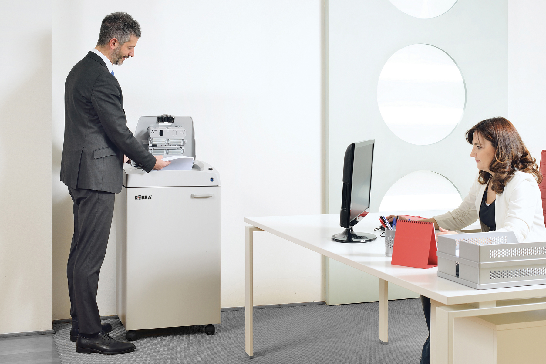 The Kobra AF.1 C2 auto-feed shredder is the most innovative automatic shredder available in the global market. The shredding speed allows walk-away fast shredding of A4 sheets in 1,9 x 15 mm (PP-5) cross cut. This automatic shredder features a large 300 sheet paper tray with a small window on the lid allowing to check the end of shredding process. Kobra AF.1 C2 has a separate entry for manual feed shredding.