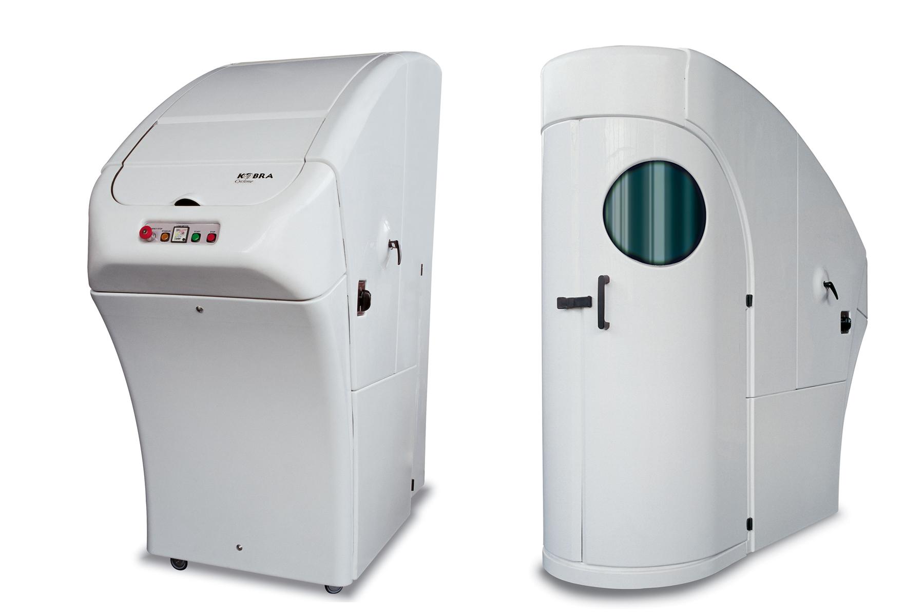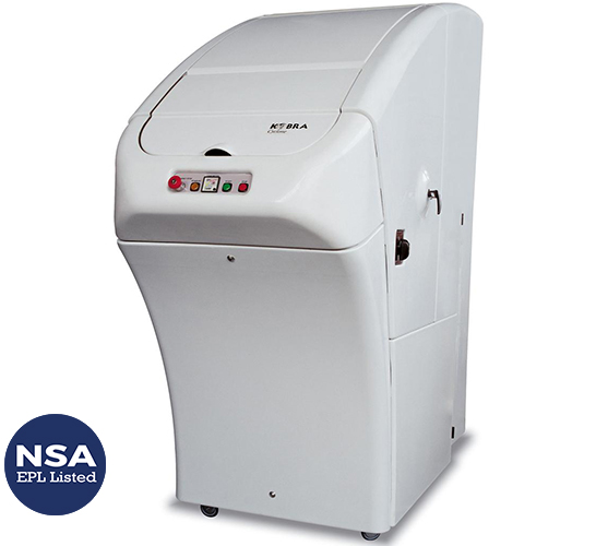 Kobra Cyclone is the ultimate development in shredding technology. Blades rotating at a very high speed combined with the power of a turbine providing the unit with an airflow allow the shredding of up to 500 sheets of paper at a time as well as the shredding of many other types of materials into 5 different available particle sizes. The size of the particles (Security Level) can be chosen when ordering the machine and it will always be possible to change the Security Level screen any time after installation of the unit with a simple operation to adapt to any shredding need. The lowest security level sets the machine for minimum bulk reduction of shredded material and maximum shredding output per hour; the highest security level sets the machine for high security shredding and maximum bulk reduction. Kobra Cyclone high security level 006 meets the latest shredding standards issued by the National Security Agency: NSA/CSS Specification 02-02 for paper destruction and NSA/CSS Specification 04-02 for Optical Media destruction. Kobra Cyclone complies with the shredding standards of ASIO - Australian Security Intelligence Organization - T4 Protective Security. Kobra Cyclone is also equipped with an integrated vacuum system specifically designed to provide the operator with clean and dust free shredding environment.