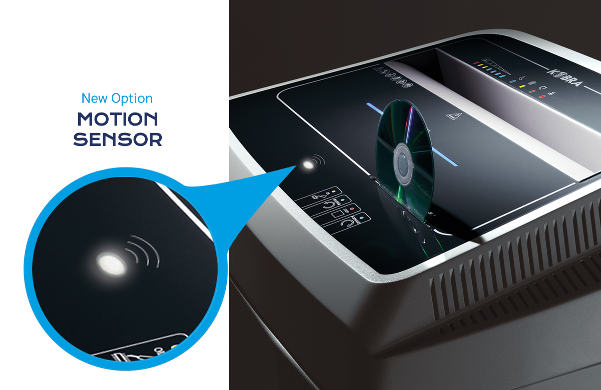 Options available: motion sensor (new option), 1,5 x 2 mm high security cross cut separated cutting unit for CDs/DVDs/credit cards (separation of shredded materials in two bins), metal detection system