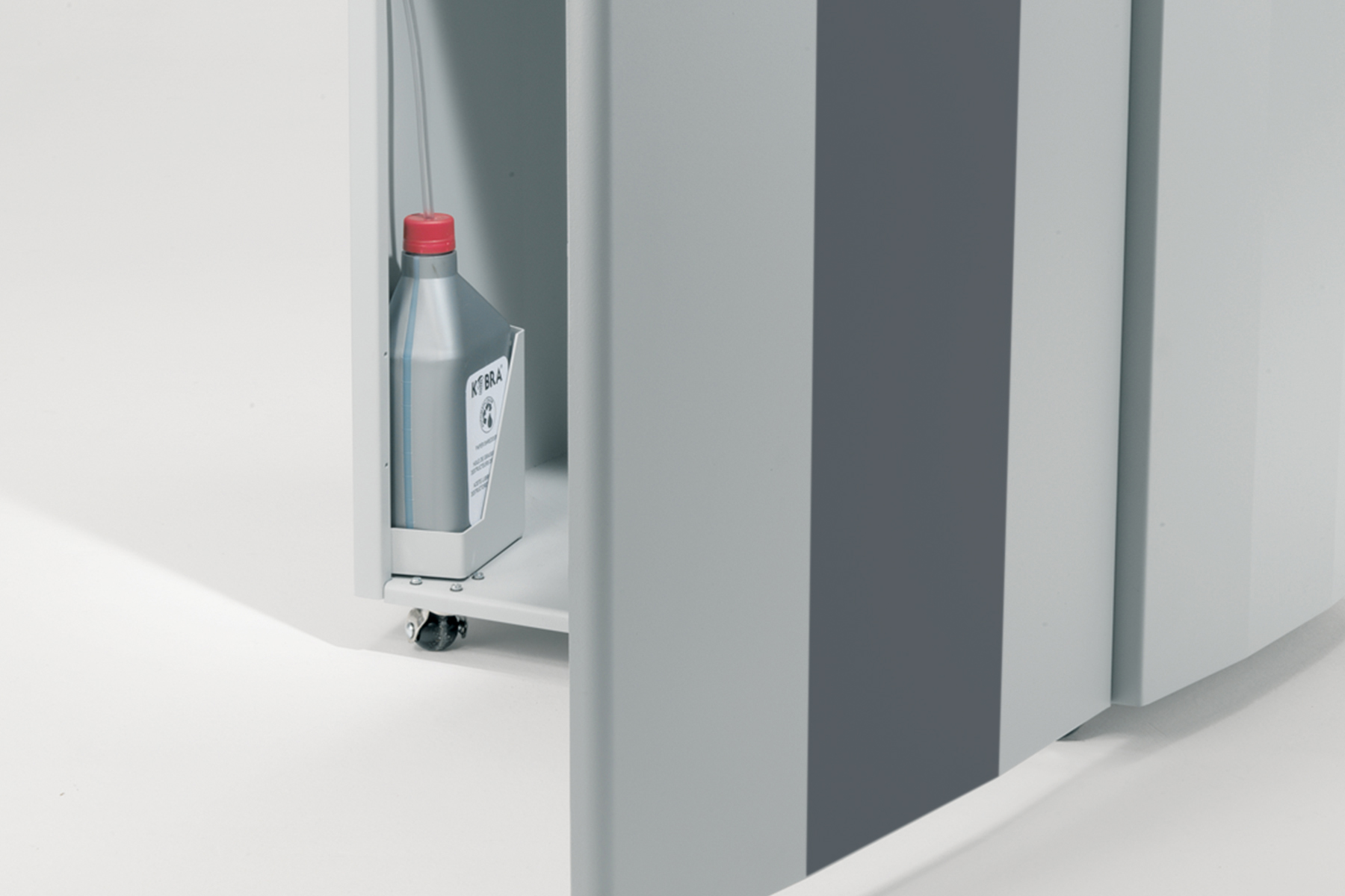 • The concave design of the cabinet reflects and contains internal operating sounds in the machine core, allowing placement of the machine in sound sensitive spaces without disruption to the office.