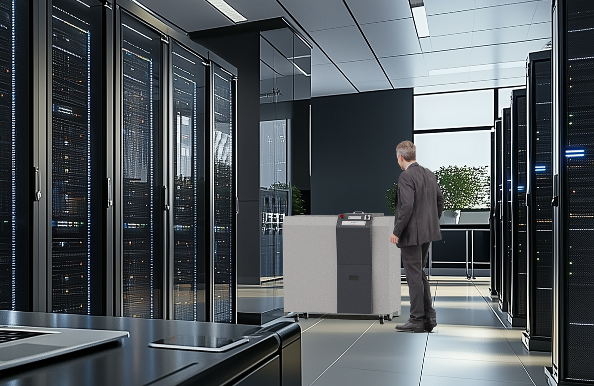 Kobra HDD H4 is a hard disk drive shredder compliant with level H-4 according to DIN66399 with reduction of data carrier into particles of size less than 2.000 mm2 capable of destroying rotational and digital media devices including Hard Drives up to 3.5", Solid State Drives (SSD), LTO, Ultrium and Solid State Devices (Phones and PDAs). The new KOBRA HDD H4 produces very low noise levels and continuous duty operation, destroying digital media devices and making retrieval impossible. KOBRA HDD H4 can shred up to 250 3.5" hard drives per hour. KOBRA HDD H4 offers the latest Touch Screen Technology, the most technologically advanced on the market today. Functions are activated by simply touching the panel, the special LED Feeding Control System allows the operator to monitor and control the load on cutting knives during bulk and continuous shredding.