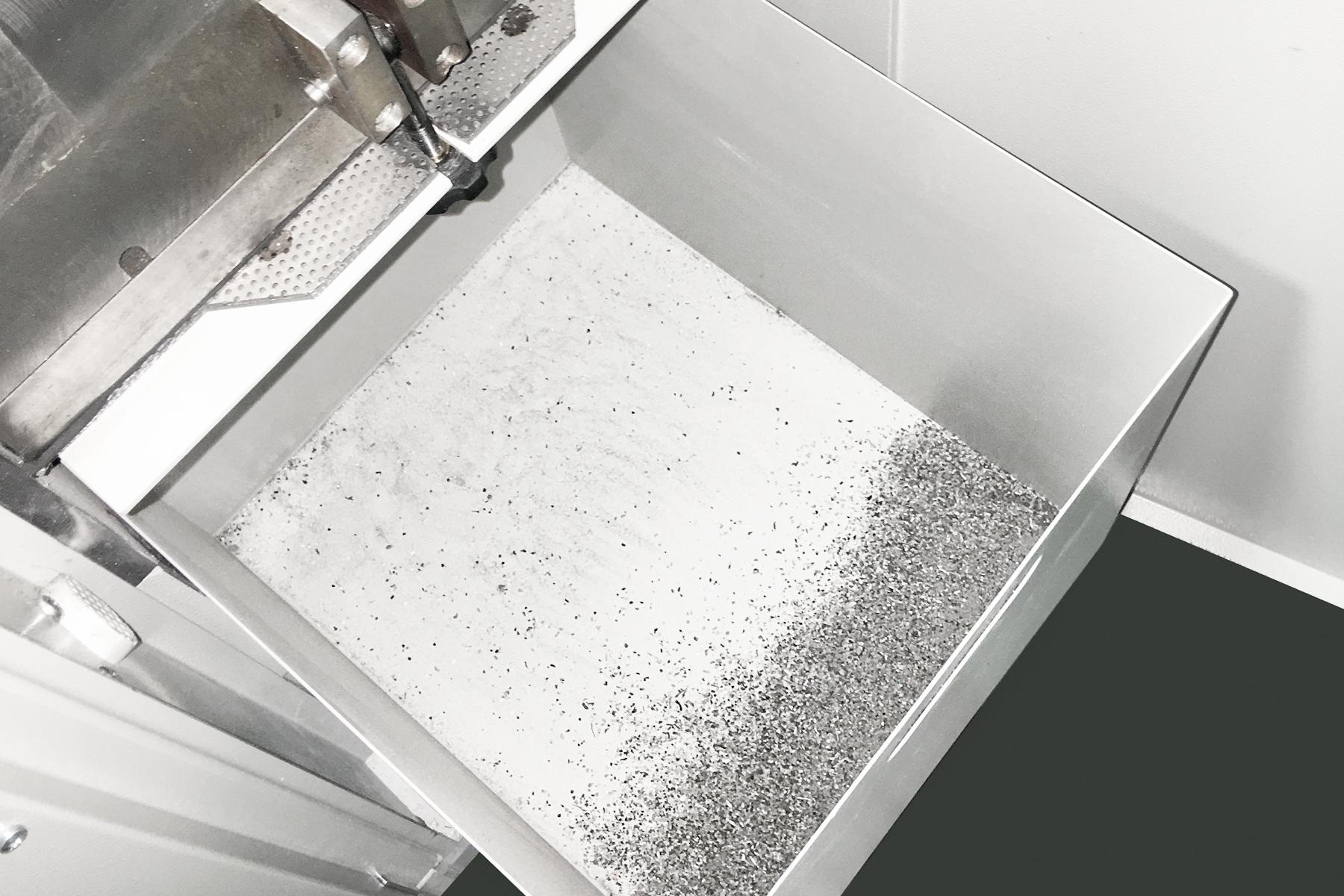 Kobra SSD is equipped with an active 1.6 HP internal state-of-the-art air filtration system to insure a clean, safe and comfortable operating environment. The air filtration system continuously transports air from different areas inside the machine including the feed port and filters the air through particle and HEPA filters to capture and contain harmful materials used in the manufacturing of ICs. Compared to machines with passive filters, active air filtration system in the KOBRA SSD is the better way to protect the operator and the environment.
