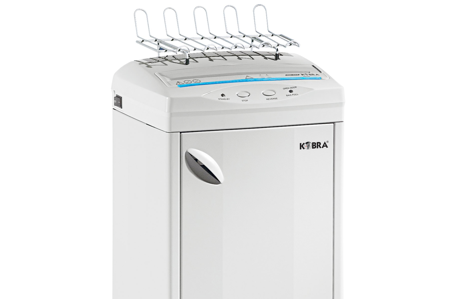 Distruggidocumenti classic line con mobile in metallo, robustezza garantita anche dalle trasmissioni a catena con ingranaggi in acciaio e coltelli di taglio in acciaio temprato non danneggiabili da punti metallici e graffette. Motore con protezione termica, capace di funzionare 24 ore su 24 senza surriscaldarsi. Kobra 260 C4 distrugge fino a 17 fogli per volta con taglio a frammento da 3,5 x 30 mm (P-4).
