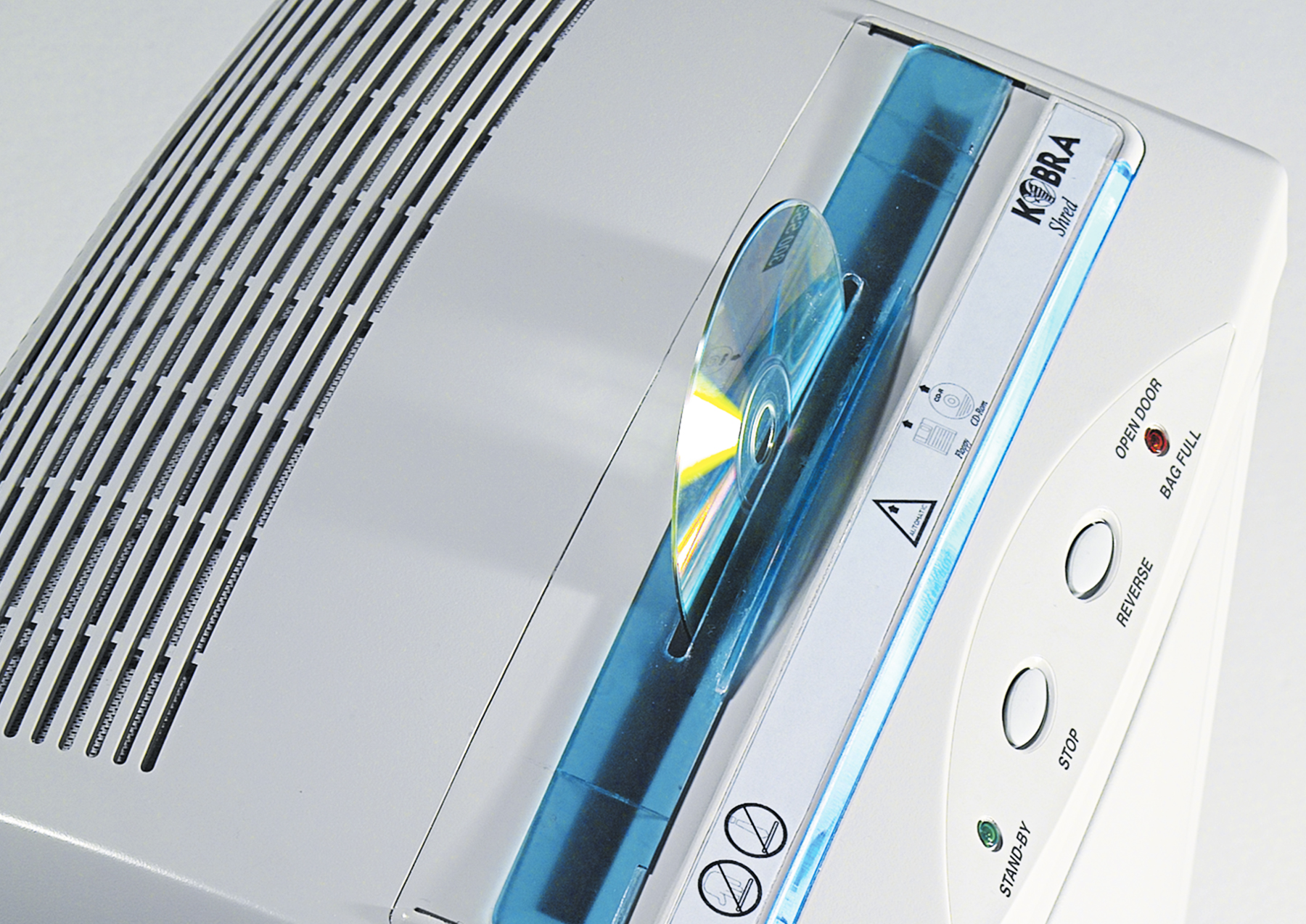 Distruggidocumenti classic line con mobile in metallo, robustezza e potenza garantite anche da doppia trasmissione a catena con ingranaggi in acciaio e coltelli di taglio in acciaio temprato non danneggiabili da punti metallici e graffette. Due motori con protezione termica, capaci di funzionare 24 ore su 24 senza surriscaldarsi. Kobra 300 SS5 distrugge fino a 46 fogli per volta con taglio a striscia, distrugge anche CD/DVD/Blu-ray, carte di credito e floppy-disk.