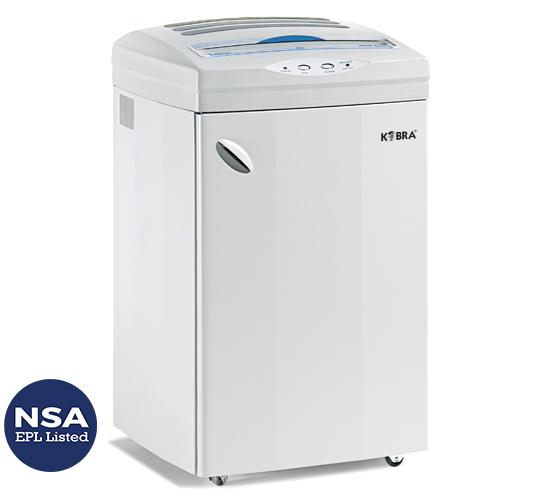 Distruggidocumenti per la distruzione ad alta sicurezza di documenti "Classificati" e "Top Secret", approvato da numerosi enti militari e governativi. Lo speciale taglio da 0,8 x 5 mm mm rispetta e supera le ultime norme NSA/CSS Specification 02-01 emesse dalla National Security Agency del Governo USA. La costante massima capacità distruttiva è garantita anche dall'oliatore automatico integrato che lubrifica i coltelli di taglio senza l'intervento manuale. Dotato di potente motore da 2100 watt per distruzioni continue 24 ore su 24, trasmissione a catena con ingranaggi in acciaio e coltelli di taglio in acciaio temprato per la massima robustezza e resistenza all'usura. Il modello HS-6 riduce un foglio di carta in circa 20.000 micro-frammenti irricostruibili anche con microscopi elettronici.