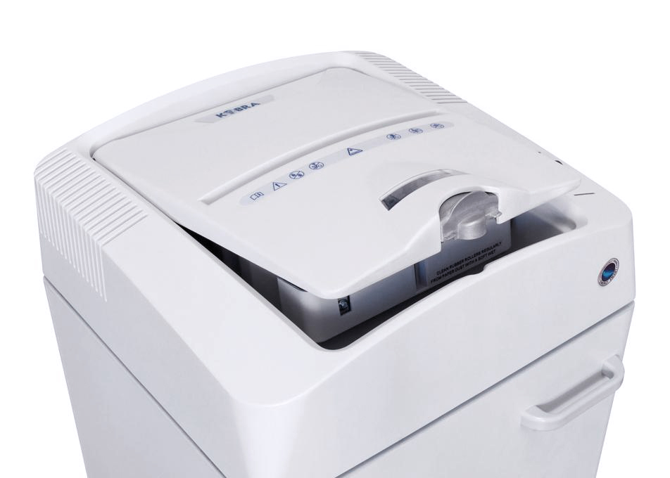 Dotato di esclusiva funzionalità Oil-free, motore a funzionamento continuo e coltelli in acciaio temprato ad alto tenore di carbonio. Il sofisticato Sistema Energy Smart per il risparmio di energia in stand-by mode dopo solo 12 secondi di non utilizzo, permette un notevole risparmio nei costi di gestione della macchina. Kobra AF+1 ha una velocità distruttiva di 13 fogli al minuto e un mobile da 80 litri su ruote girevoli, ideale per uffici di medie dimensioni.
