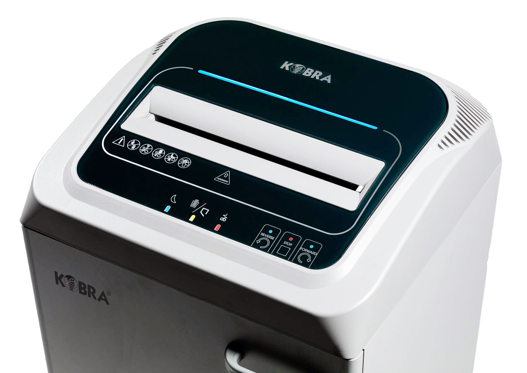 Distruggidocumenti con pannello touch screen: le funzioni della macchina si attivano con il solo sfioramento del comando sul pannello. Dotato di motore con protezione termica, capace di funzionare 24 ore su 24 senza surriscaldarsi, Kobra 245 TS S5 può distruggere fino a 29 fogli di carta per volta con taglio a striscia da 5,8 mm mm (P-2). E' possibile distruggere anche materiale trasparente. I coltelli in acciaio temprato ad alto tenore di carbonio, non danneggiabili da graffette e punti metallici, hanno speciali profili che elevano la capacità distruttiva pur mantenendo bassi consumi. Robustezza e resistenza all'usura garantite da ingranaggi in acciaio e trasmissione a catena.