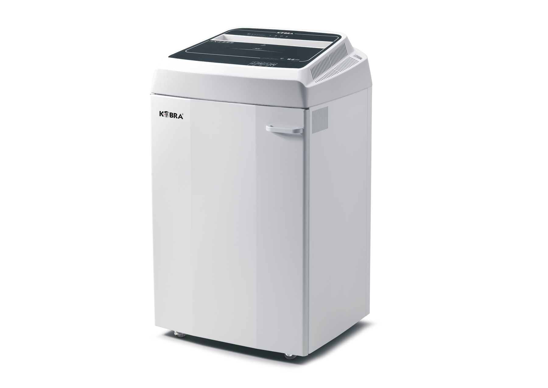Distruggidocumenti con pannello touch screen: le funzioni della macchina si attivano con il solo sfioramento del comando sul pannello. Dotato di potente motore da 2600 Watt con protezione termica, capace di funzionare 24 ore su 24 senza surriscaldarsi. KOBRA 410 TS S5 può distruggere fino a 72 fogli per volta con taglio a striscia da 5,8 mm mm (P-2). E' possibile distruggere anche materiale trasparente. Massima robustezza e resistenza all'usura garantite da ingranaggi in acciaio e trasmissione a catena, coltelli in acciaio temprato ad alto tenore di carbonio.